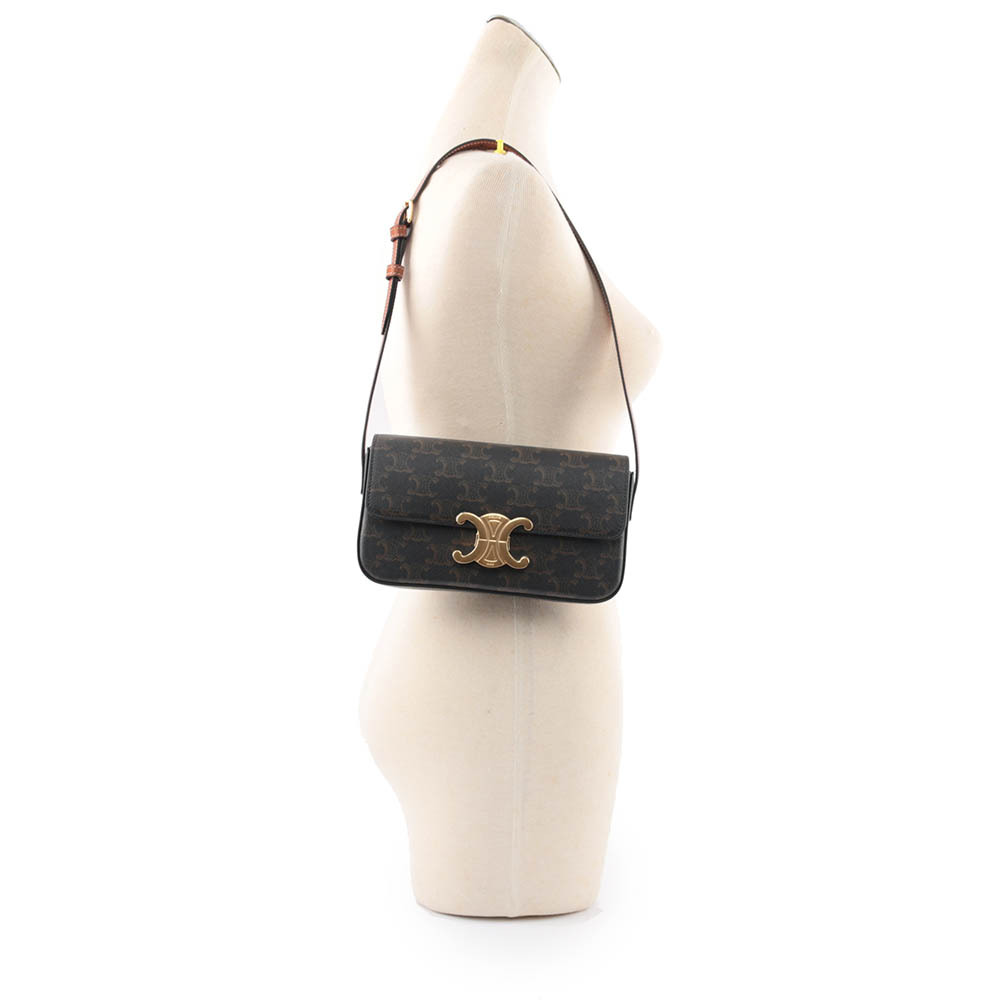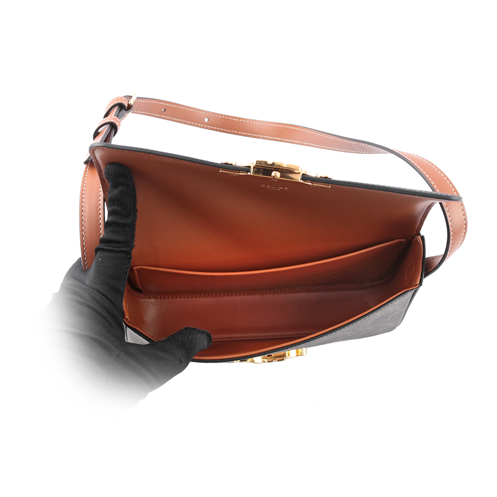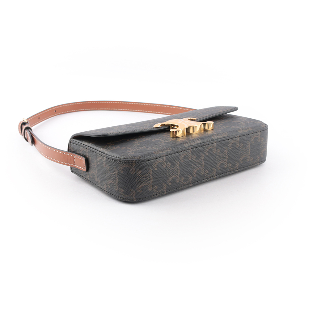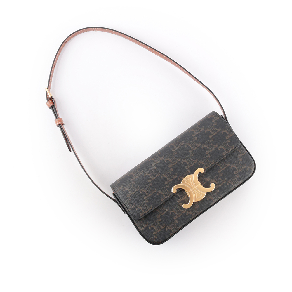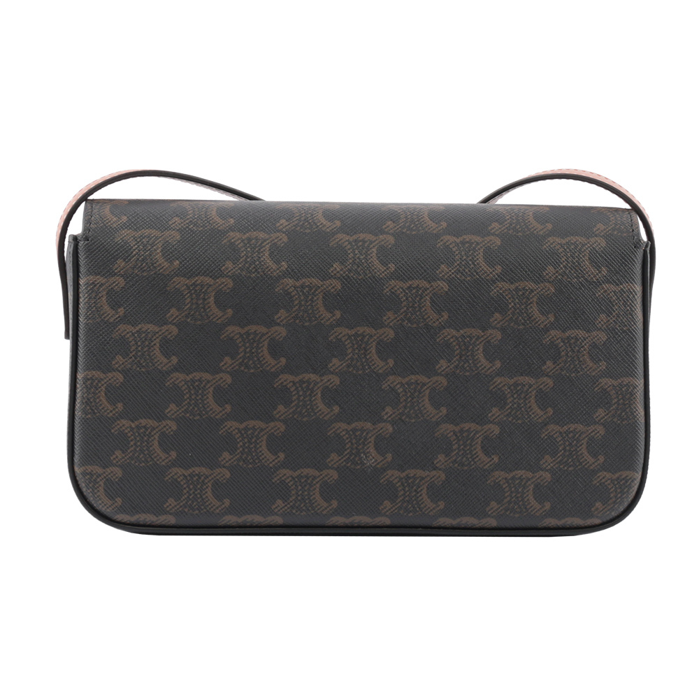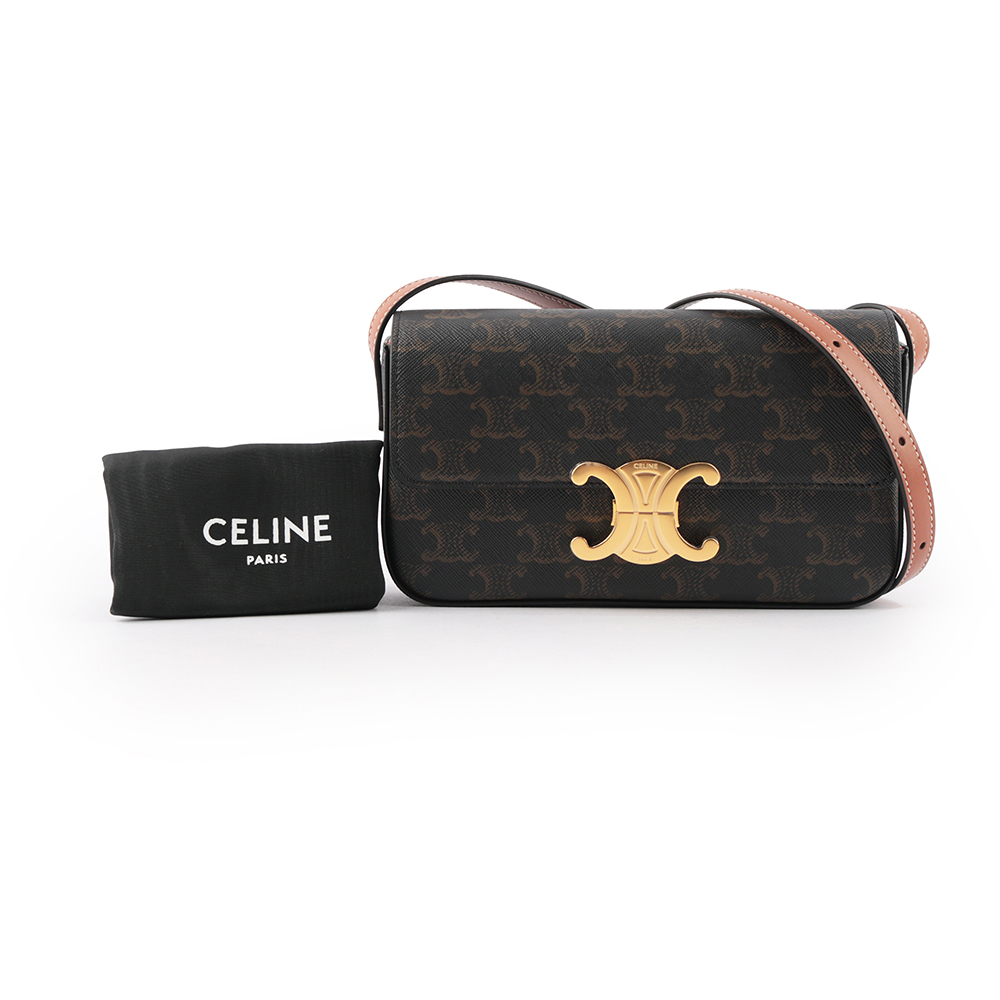 【CELINE】TRIOMPHE 凱旋標誌印花牛皮肩背包(咖啡色)