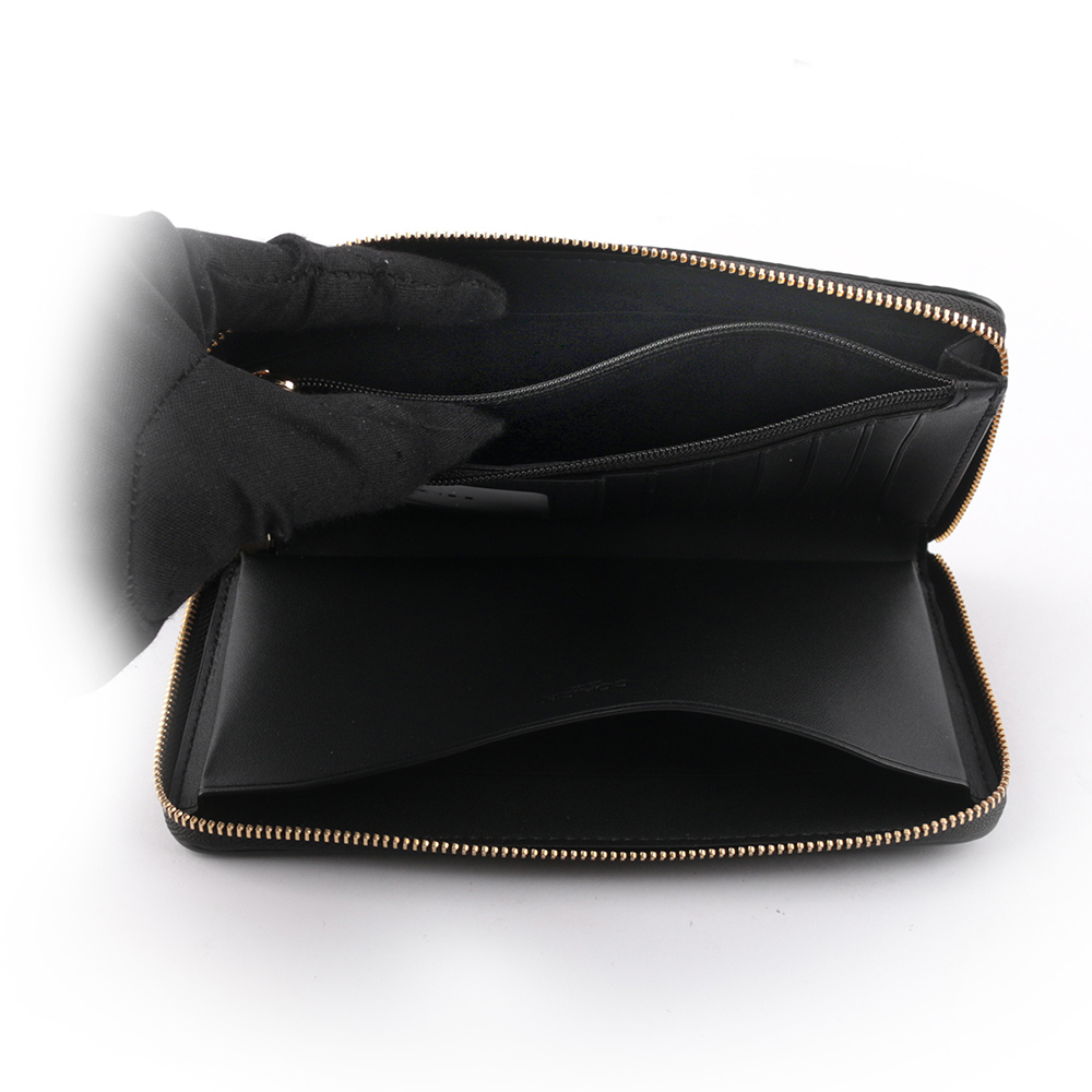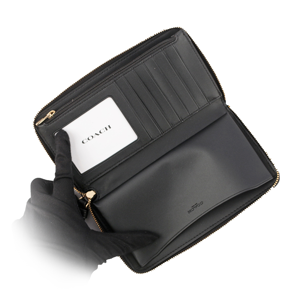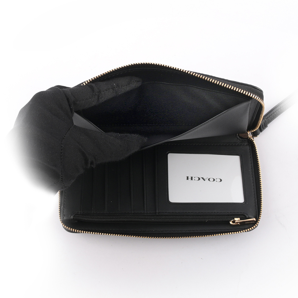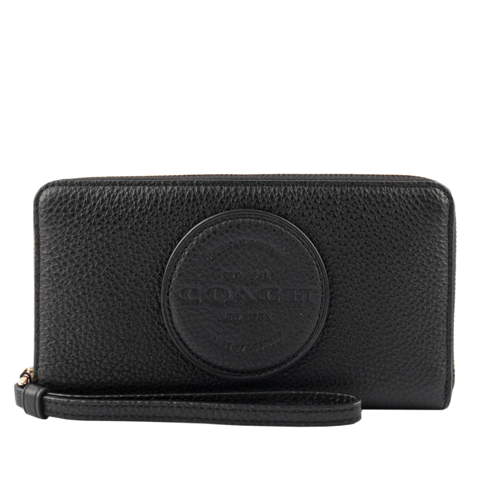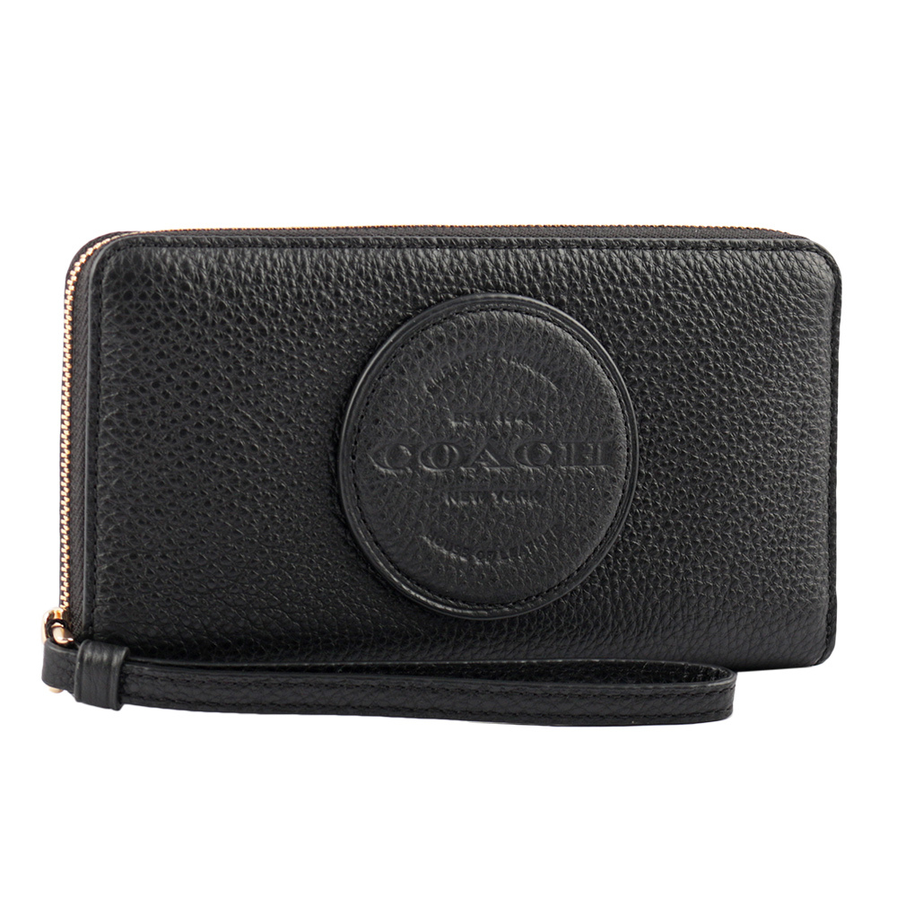 【COACH】Dempsey 圓形標誌荔枝皮革附提把手機長夾(黑色)