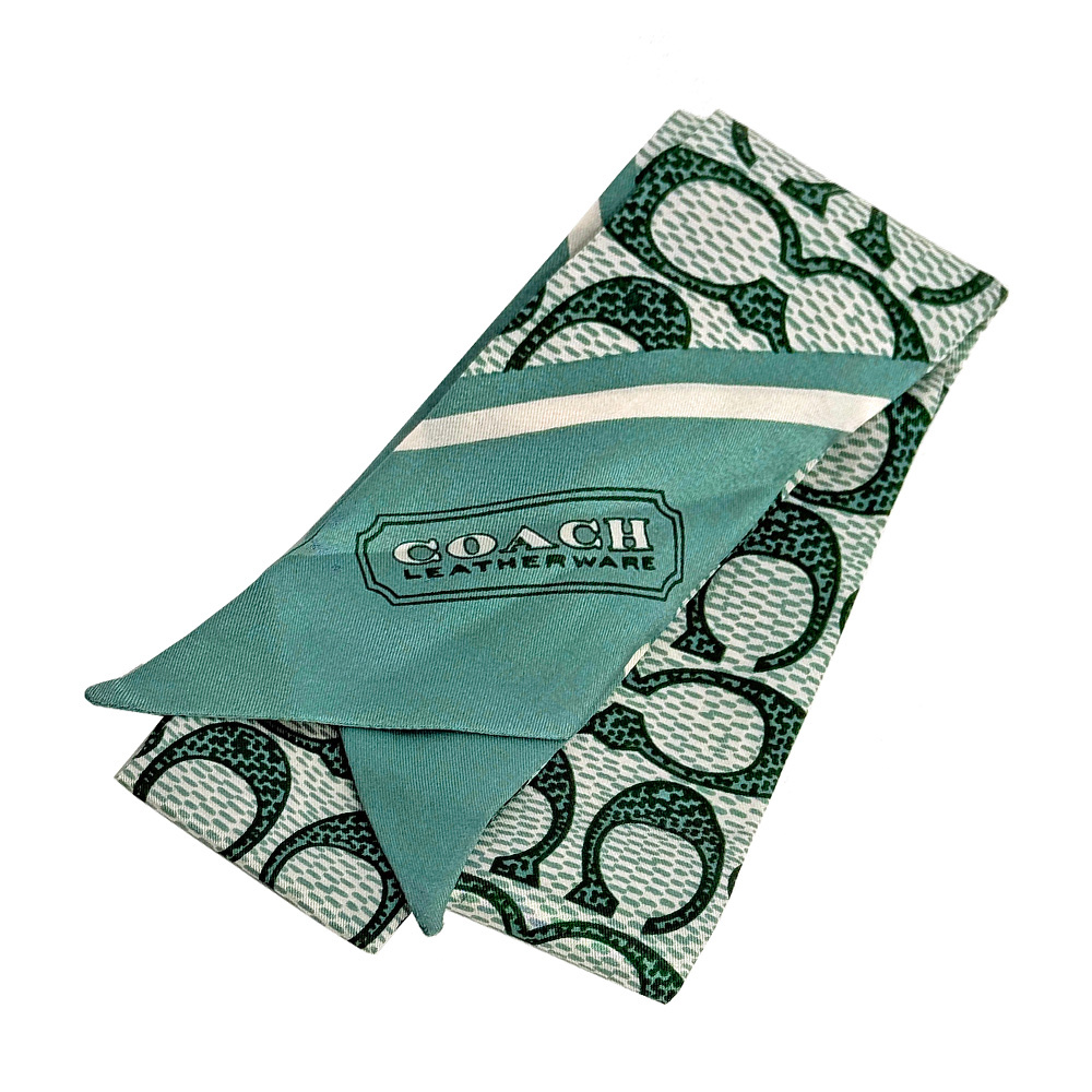 • 【COACH】Signature 復古經典標誌真絲絲巾/Twilly(海水藍)C2783 AQM