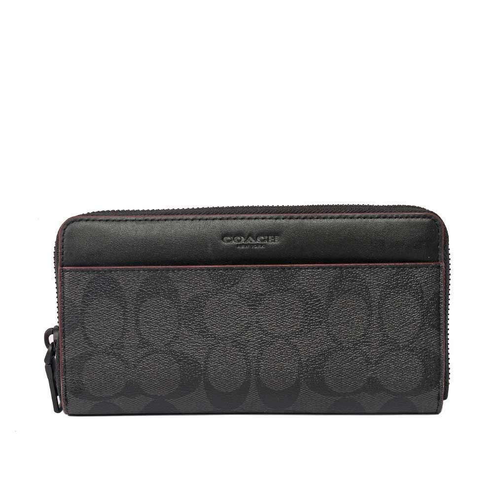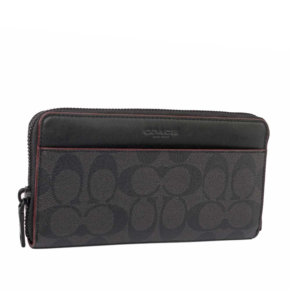 【COACH】F25517 PVC Logo紅邊皮革ㄇ拉長夾