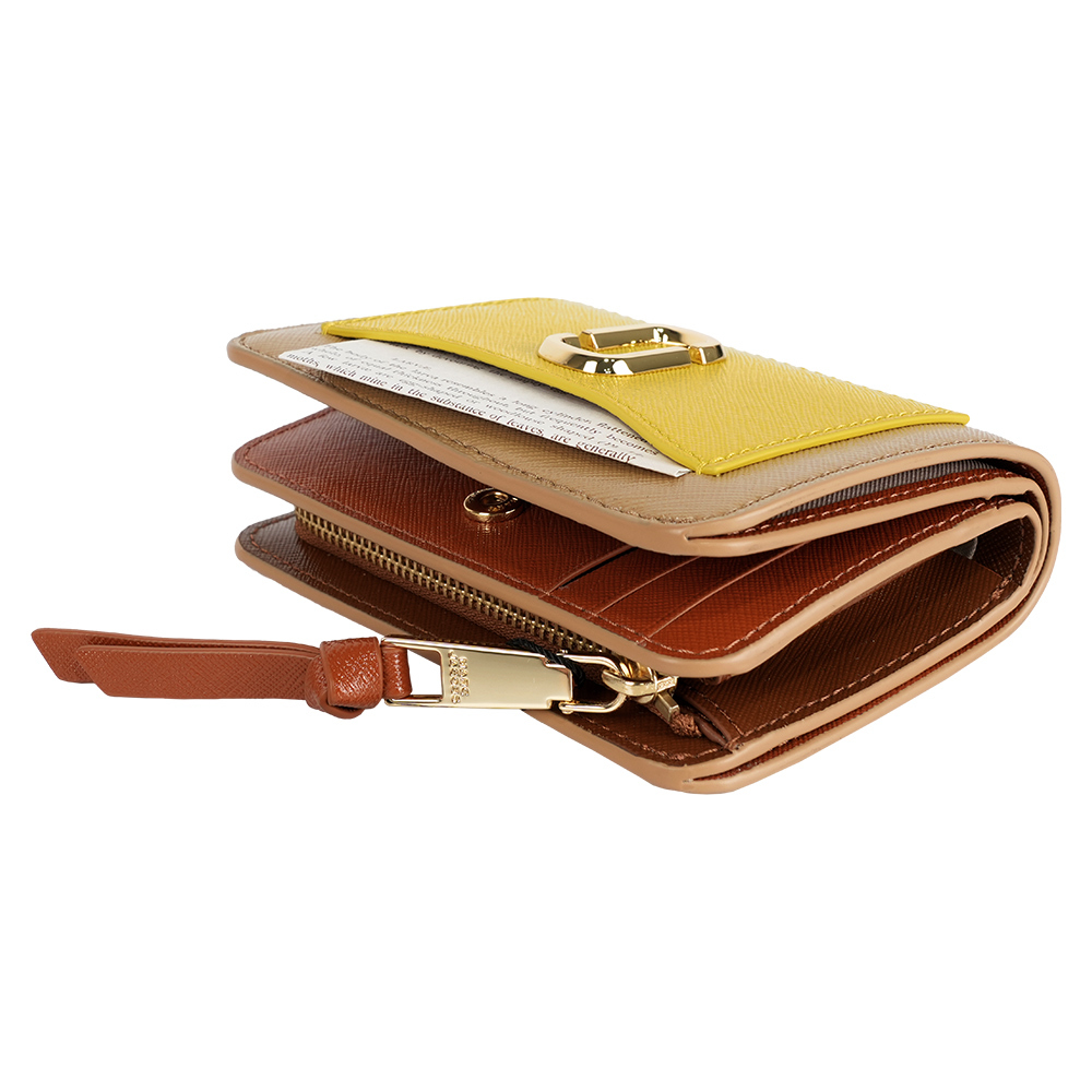 【Marc Jacobs】The Snapshot 防刮皮革暗釦二折撞色短夾(亮黃色)