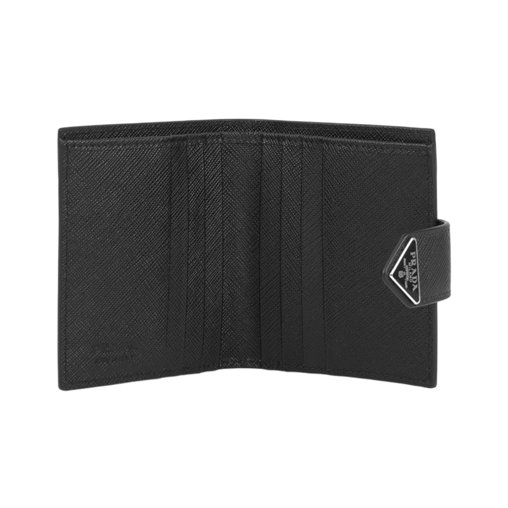 【Prada】三角牌Logo 防刮皮革二折短夾(黑色)