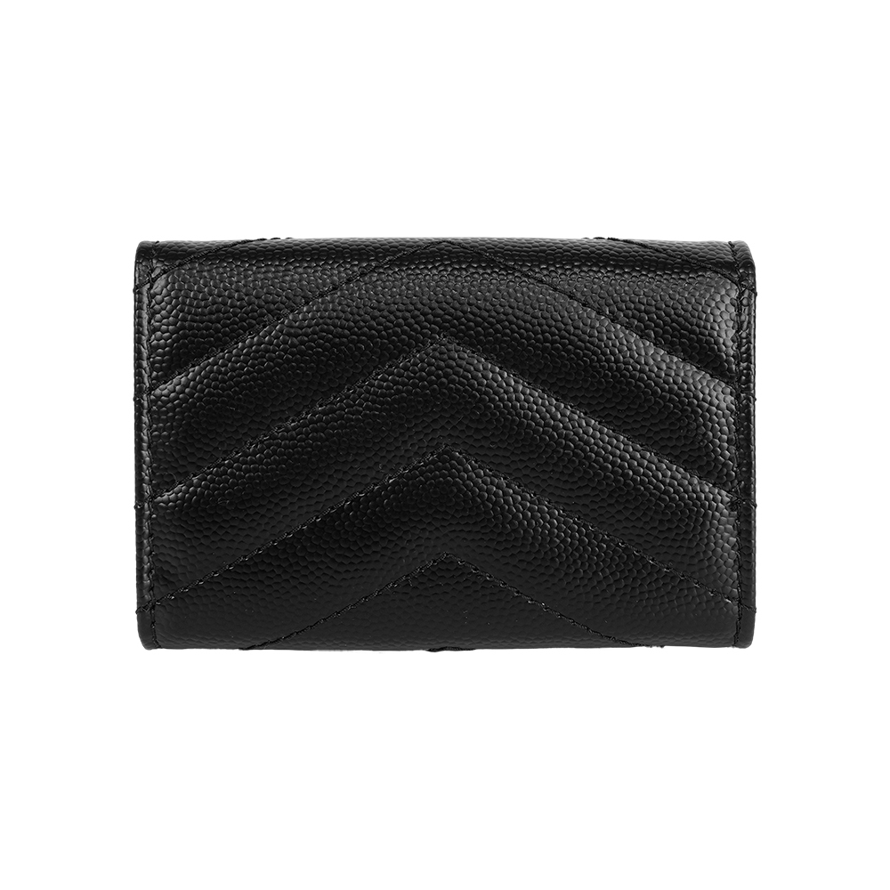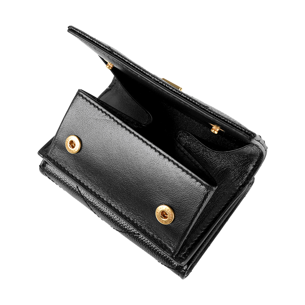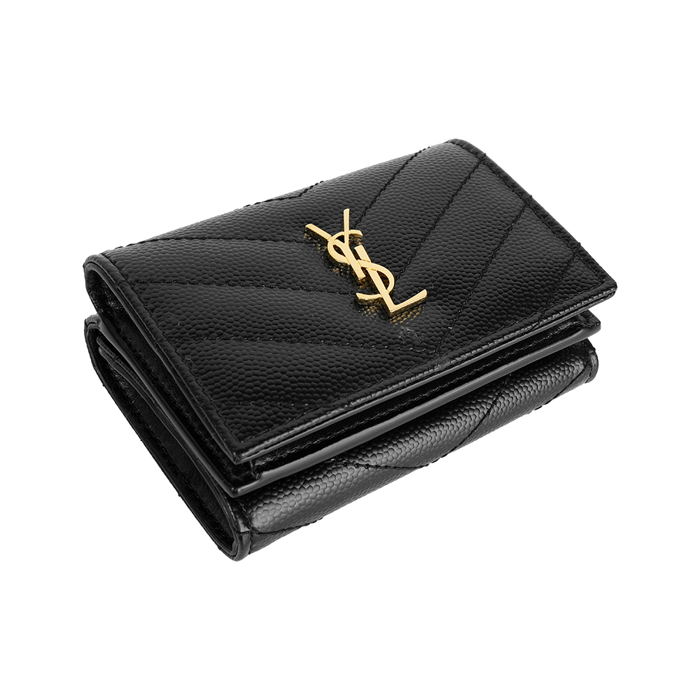 【Yves Saint Laurent】Origami 金字粒紋牛皮雙釦迷你短夾(黑色)