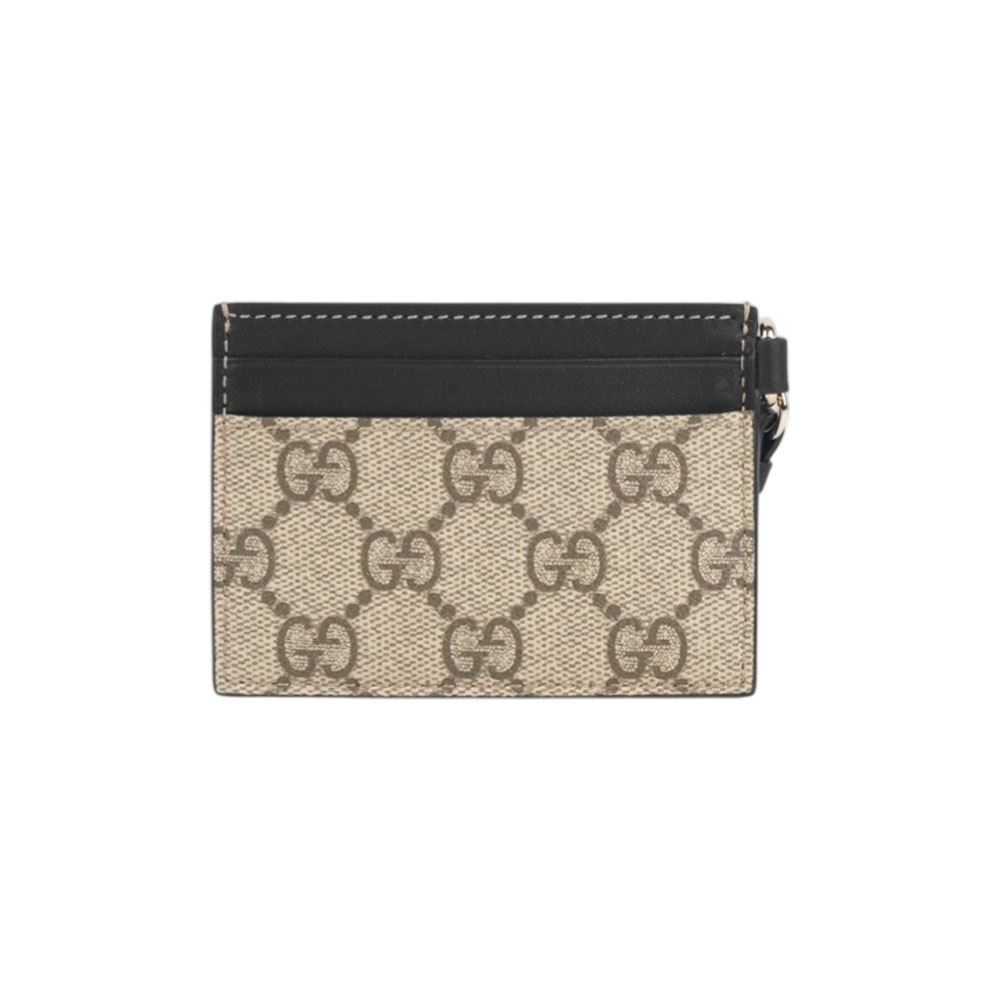【GUCCI】GG Emblem 塗層帆布及皮革卡片夾/名片夾(米色/黑色)
