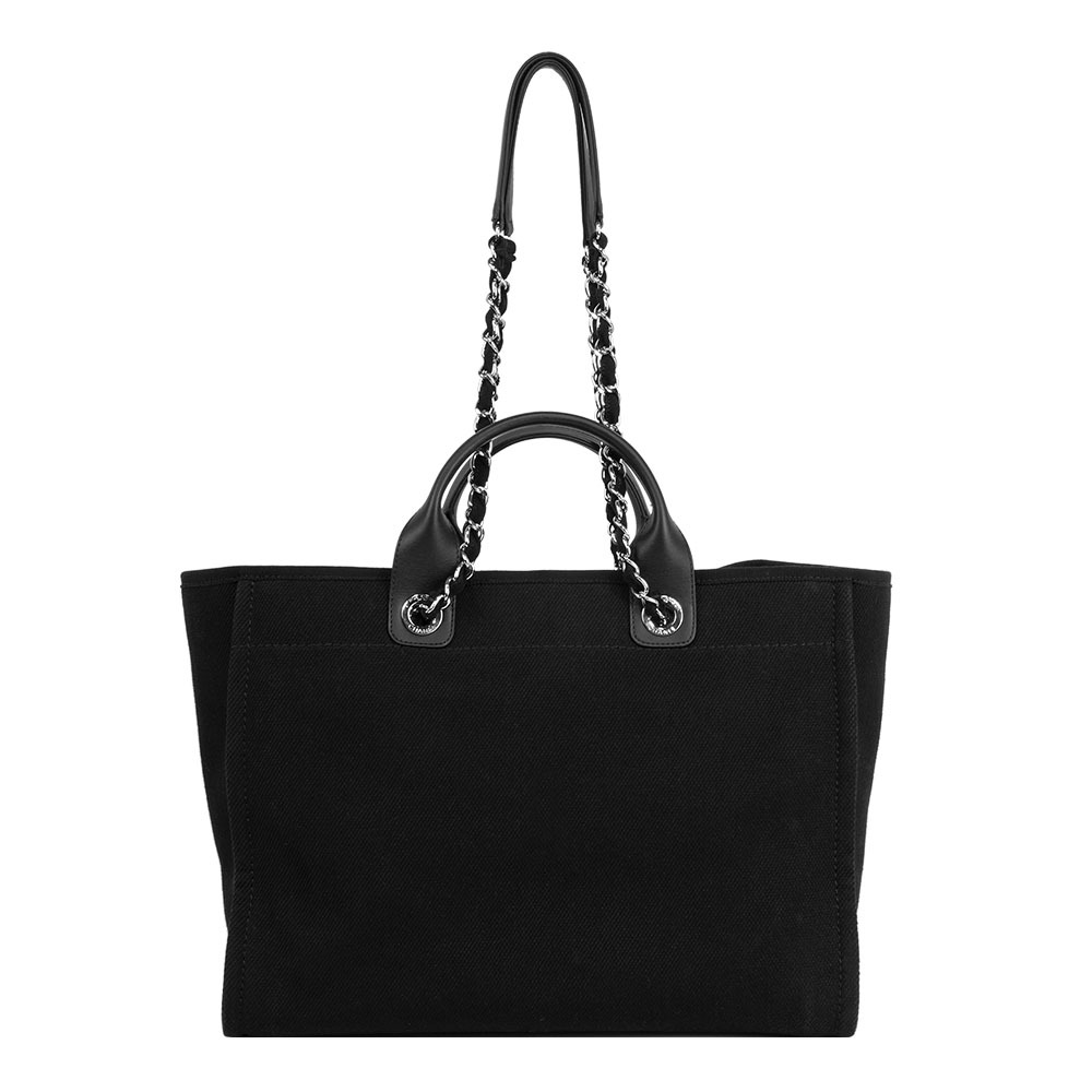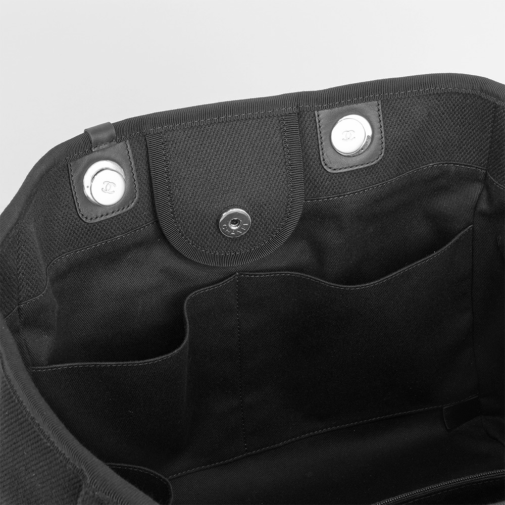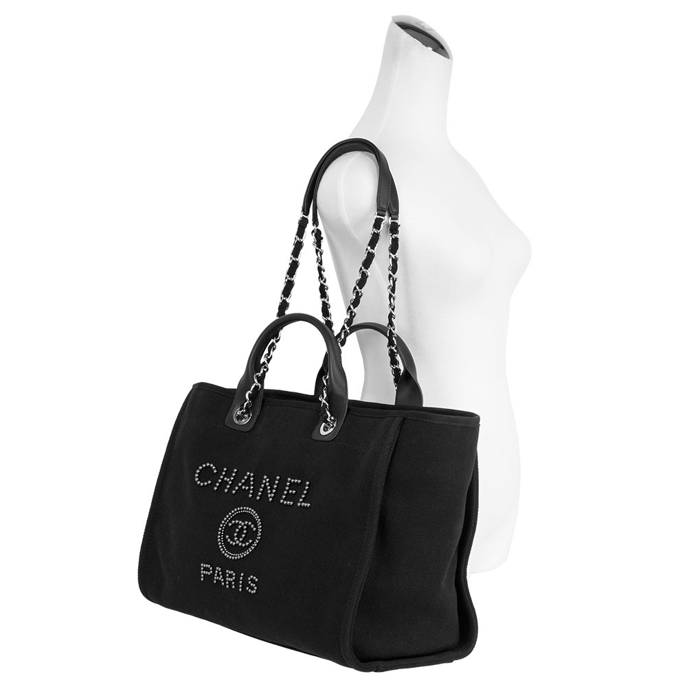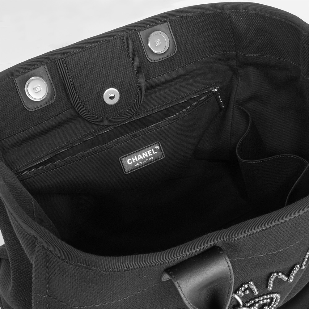 【CHANEL】黑珍珠標誌手提/肩背二用大款沙灘包/購物包(黑色)