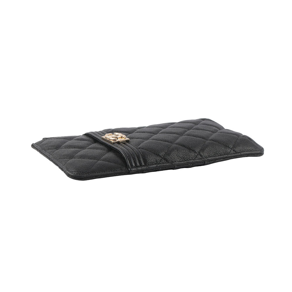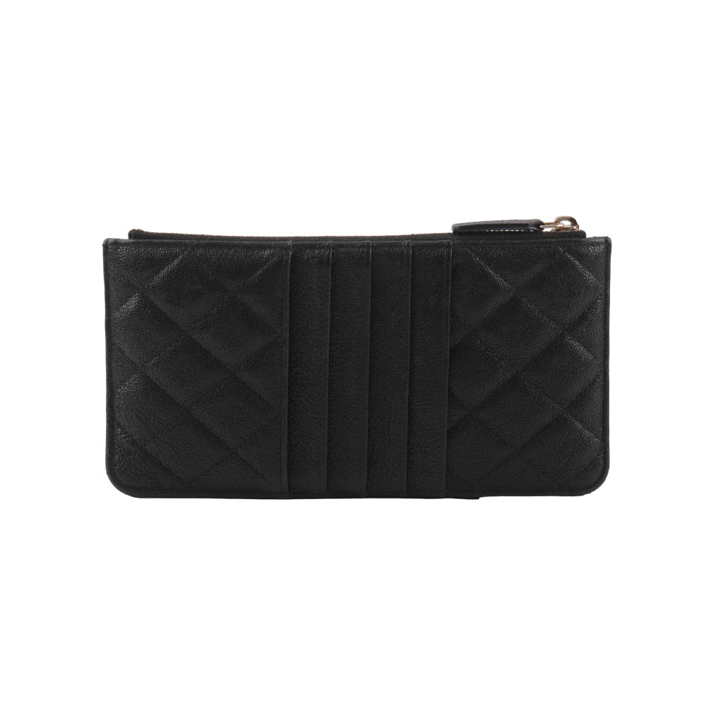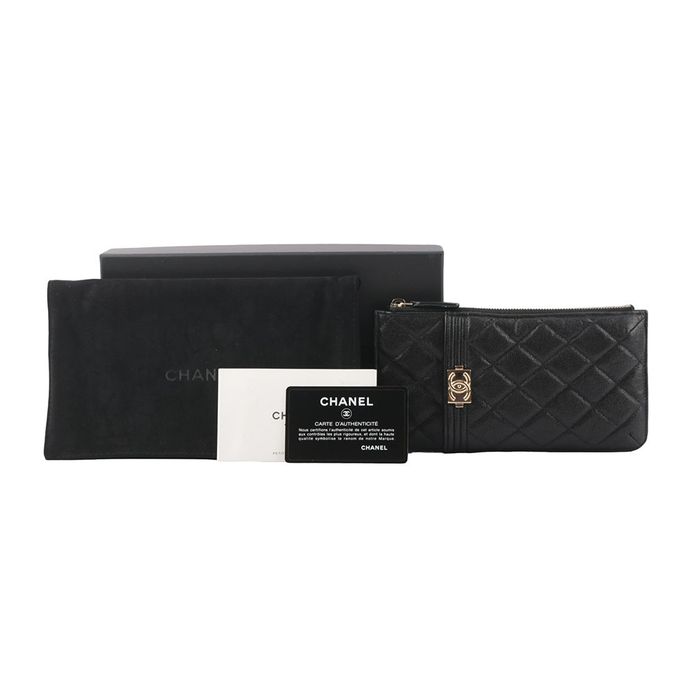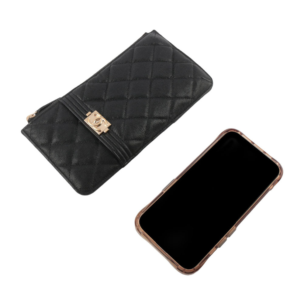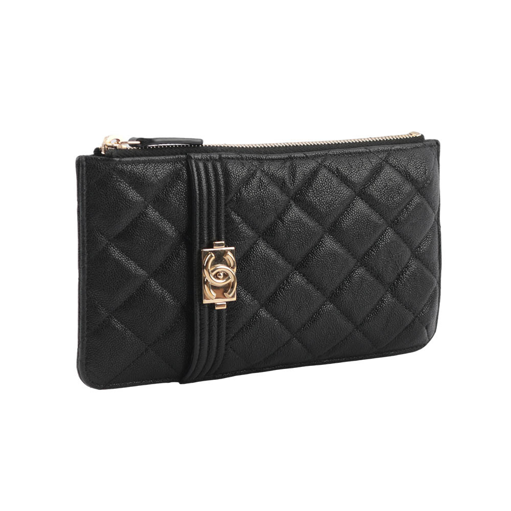 【CHANEL】Boy Chanel 金釦菱格紋牛皮拉鍊手機包/萬用包/手拿包