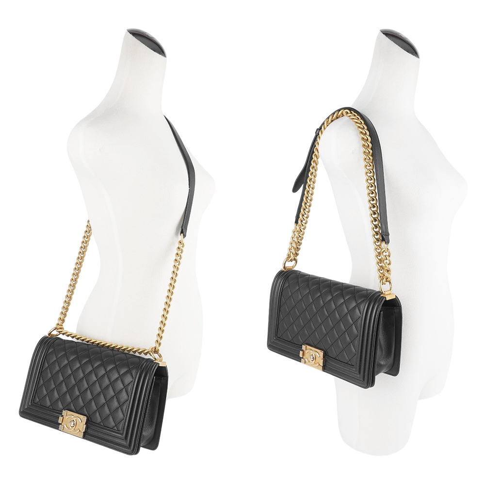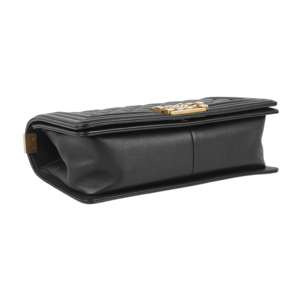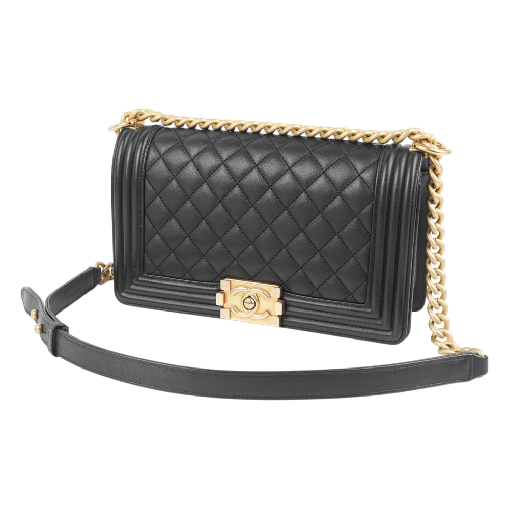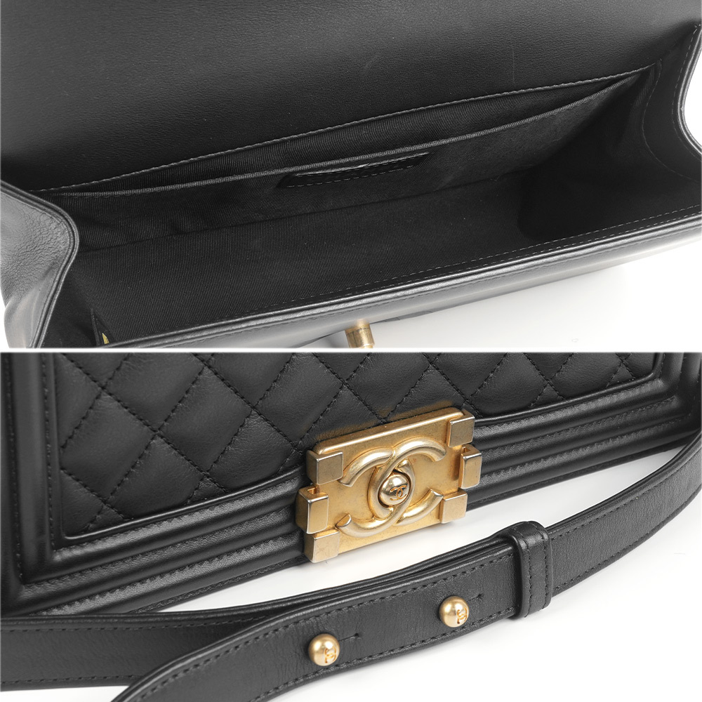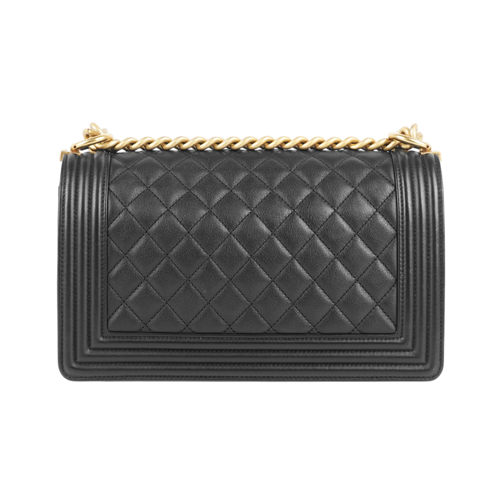 【CHANEL】小牛皮菱格紋金釦 Boy Chanel 25cm(黑色)