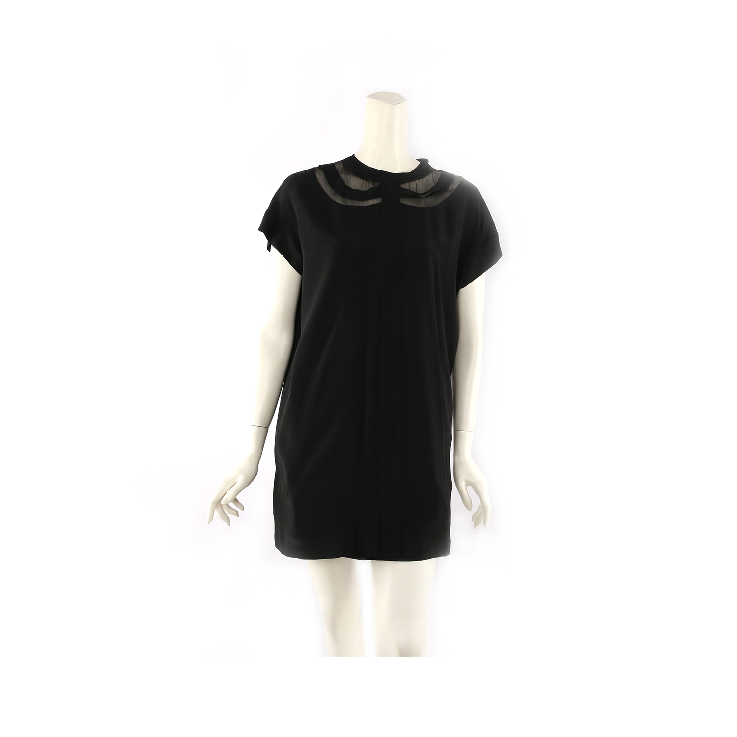 【N°21】黑色雪紡短袖洋裝 (黑色)