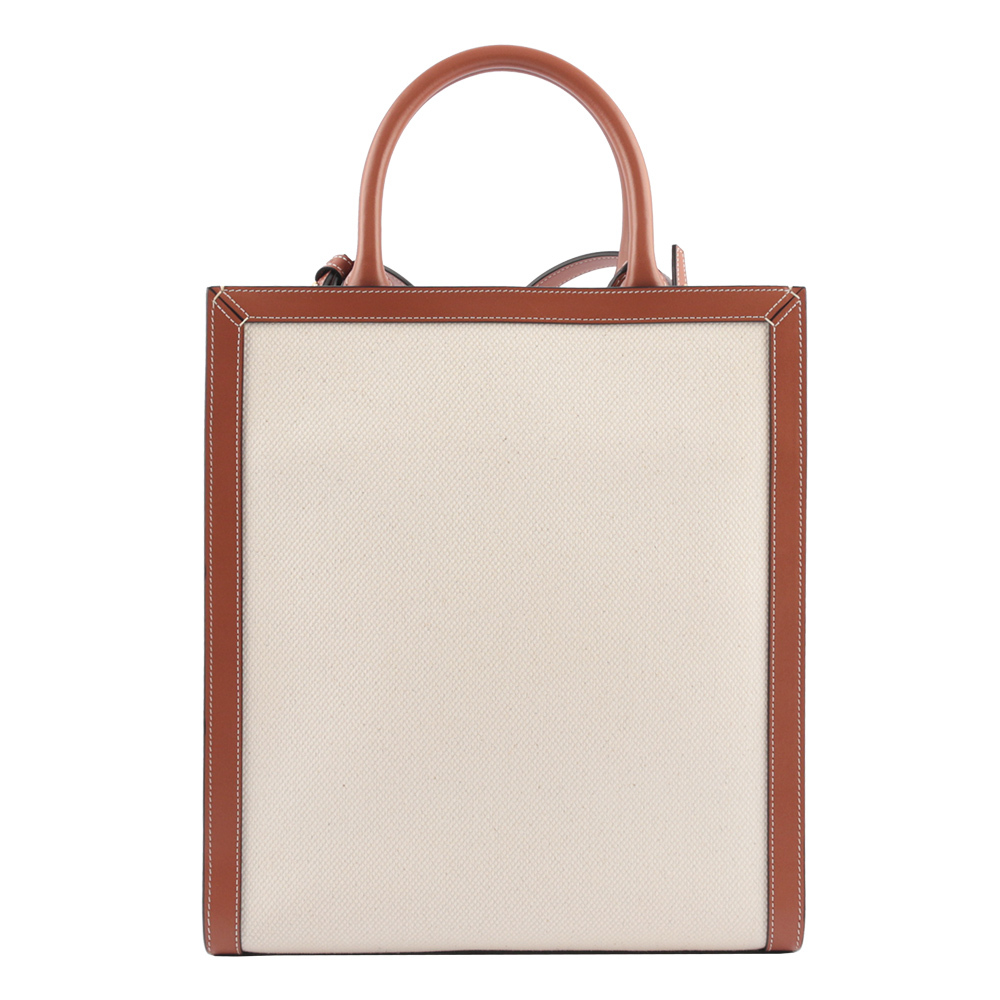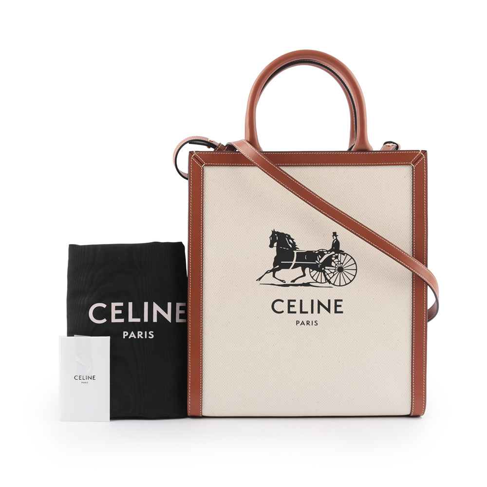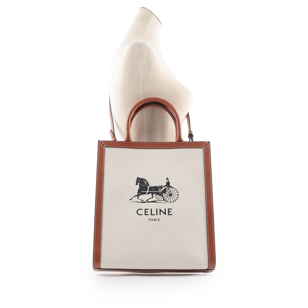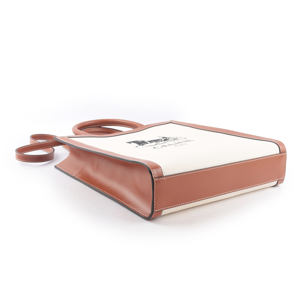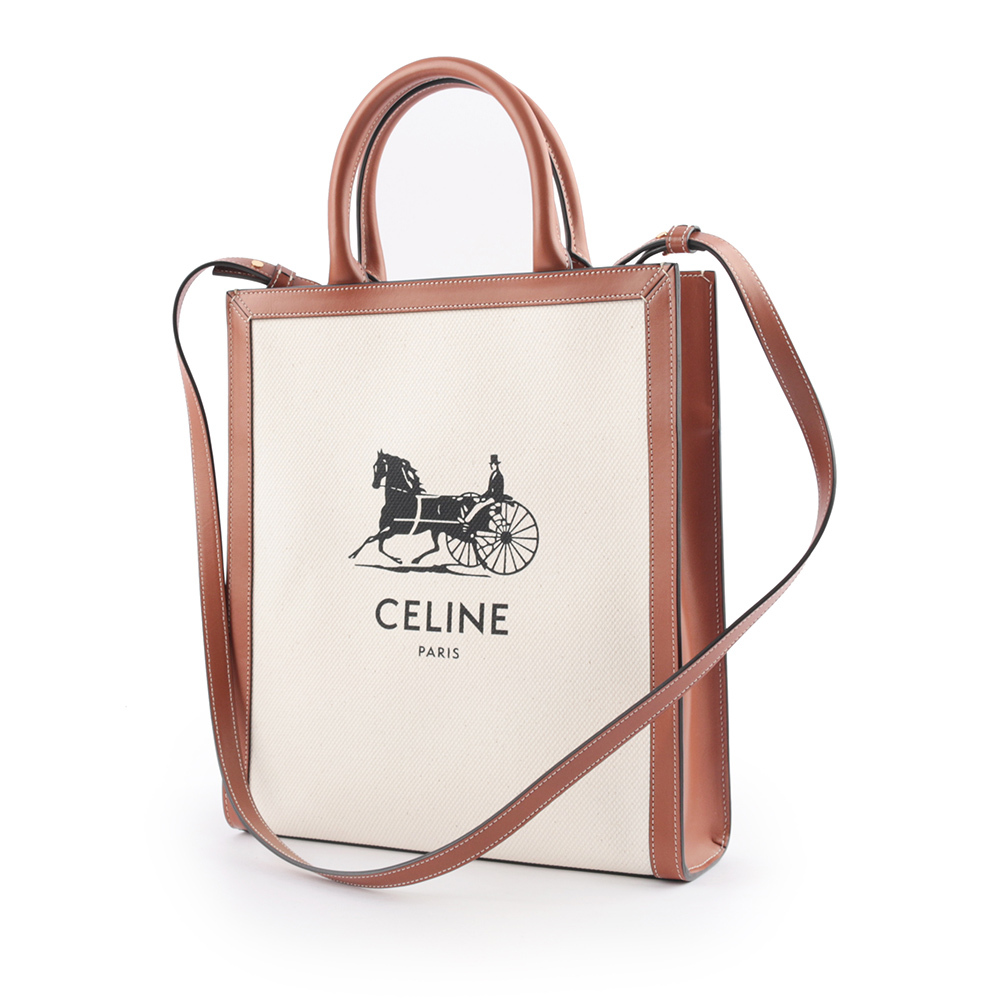 【CELINE】馬車 Logo 印花帆布及小牛皮直式CABAS(米/焦糖)