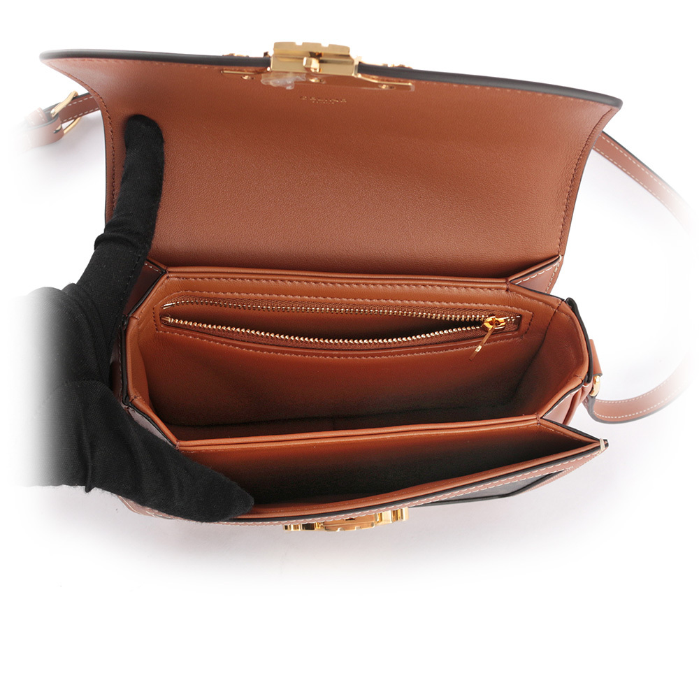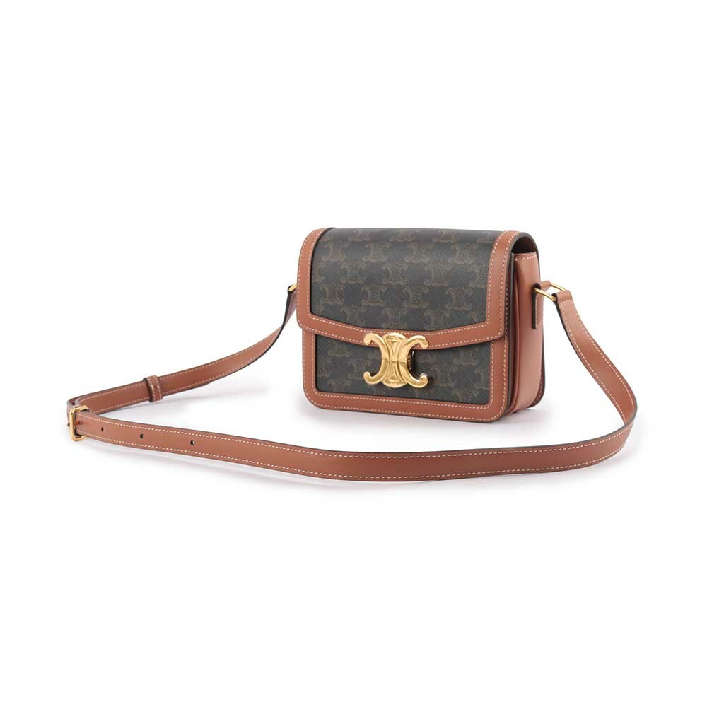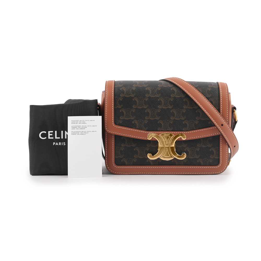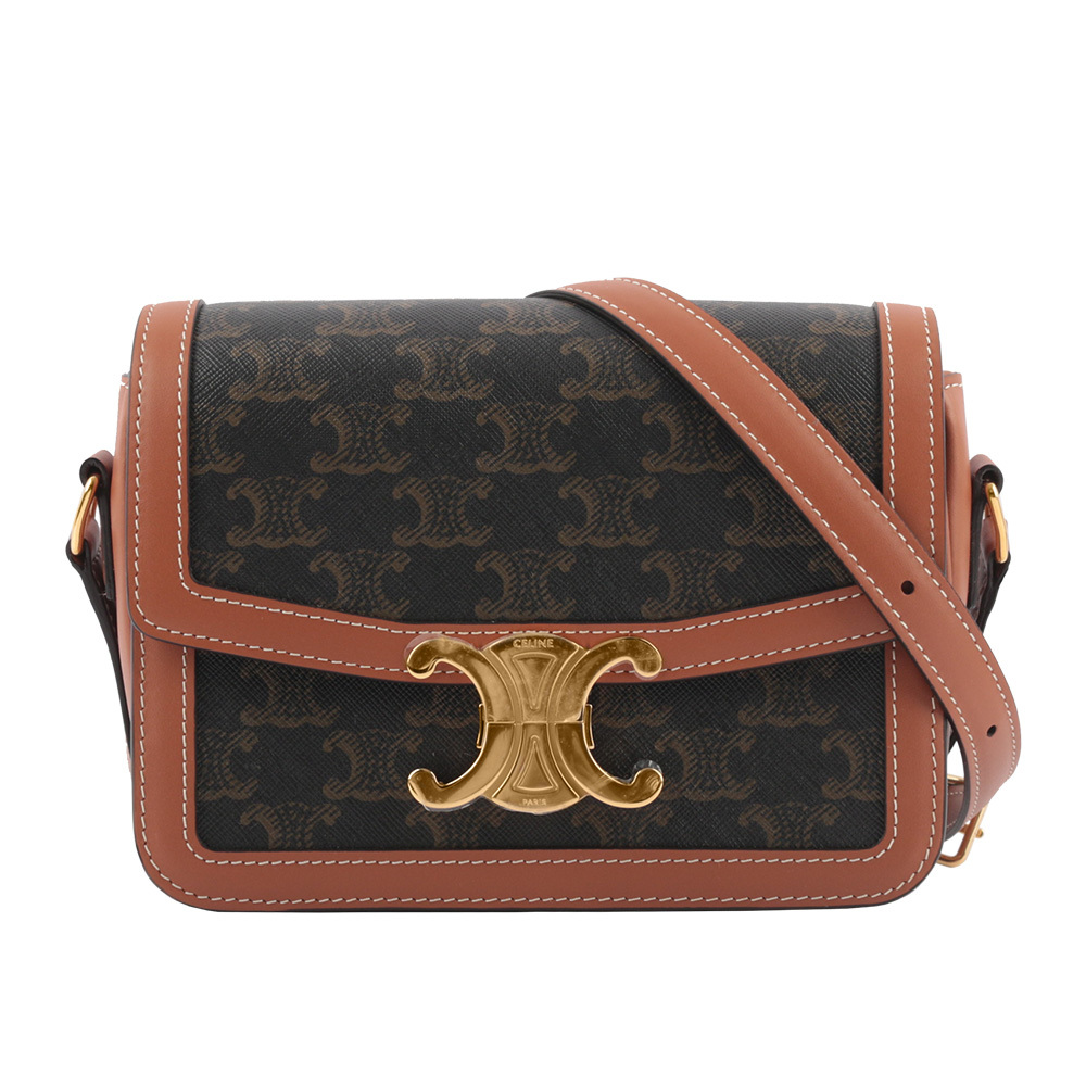 【CELINE】TEEN TRIOMPHE 塗層帆布及小牛皮凱旋包(棕褐色)