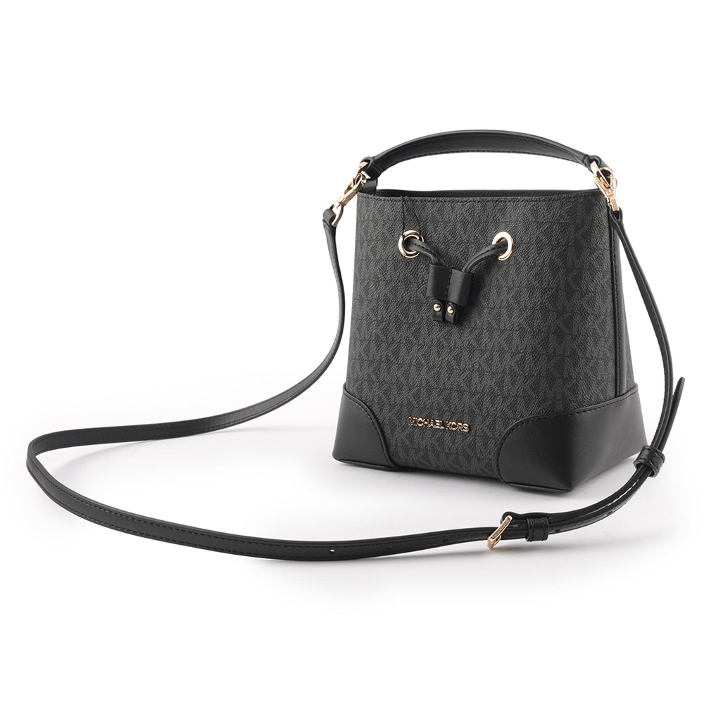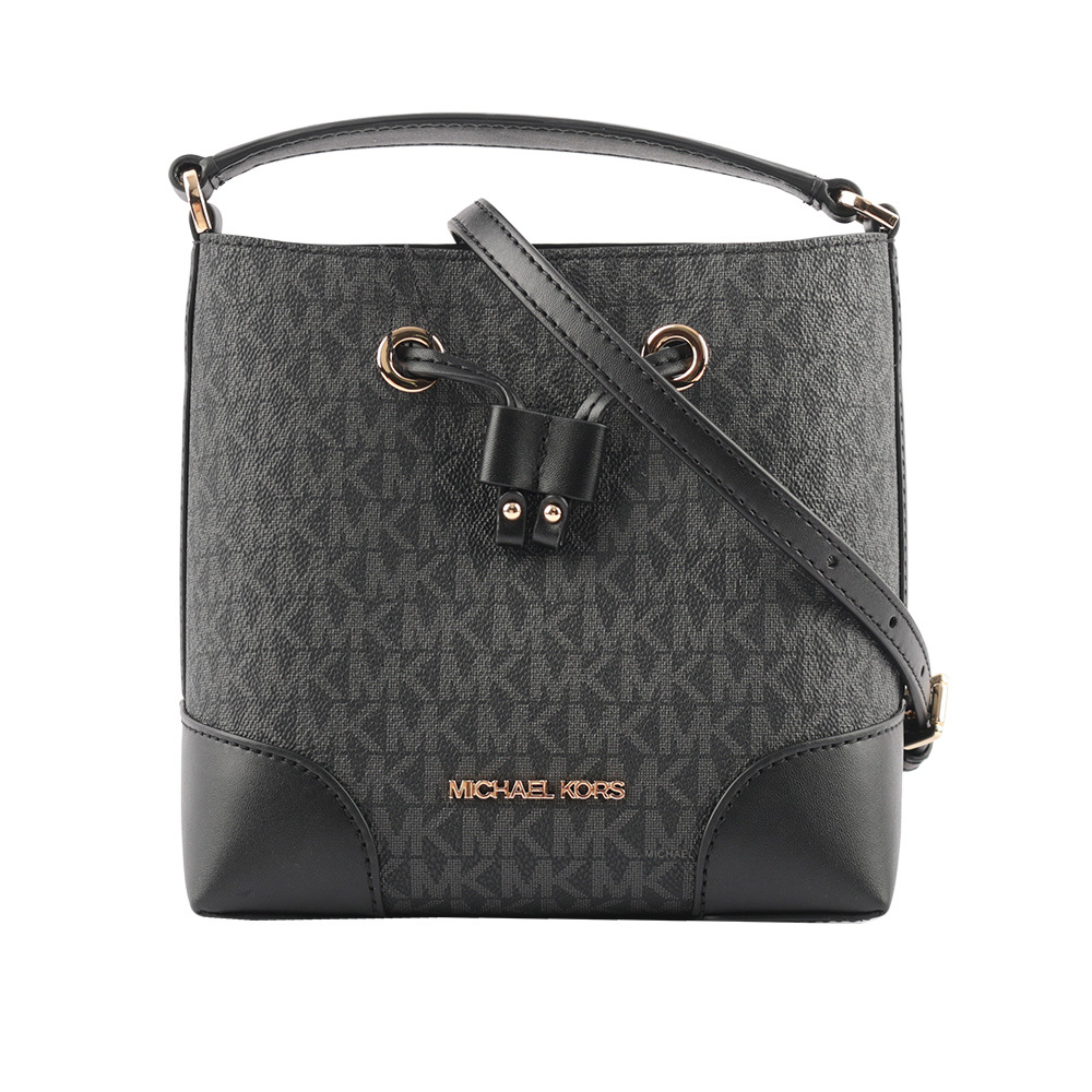【MICHAEL KORS】Mercer 塗層帆布束繩設計小款水桶包(黑色)