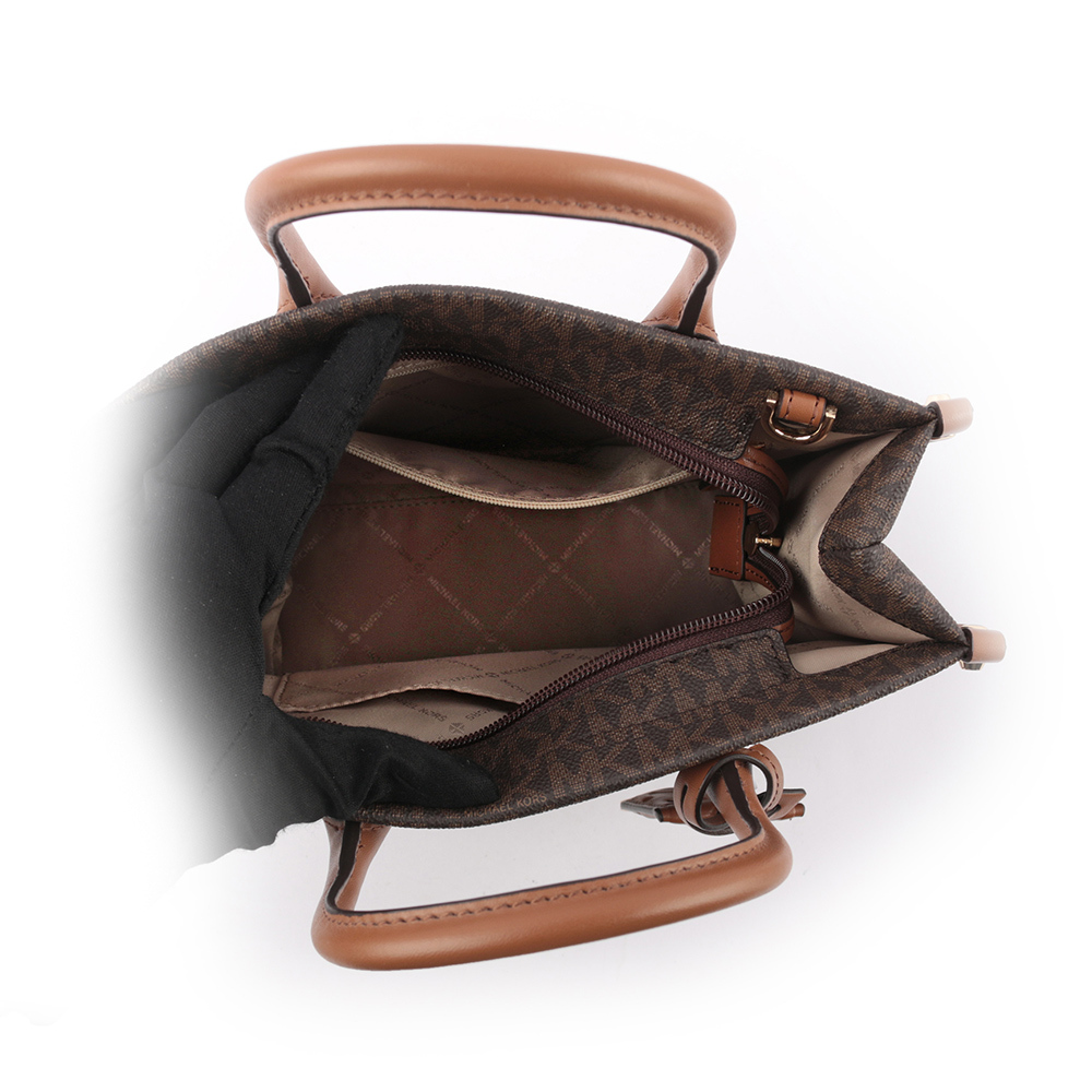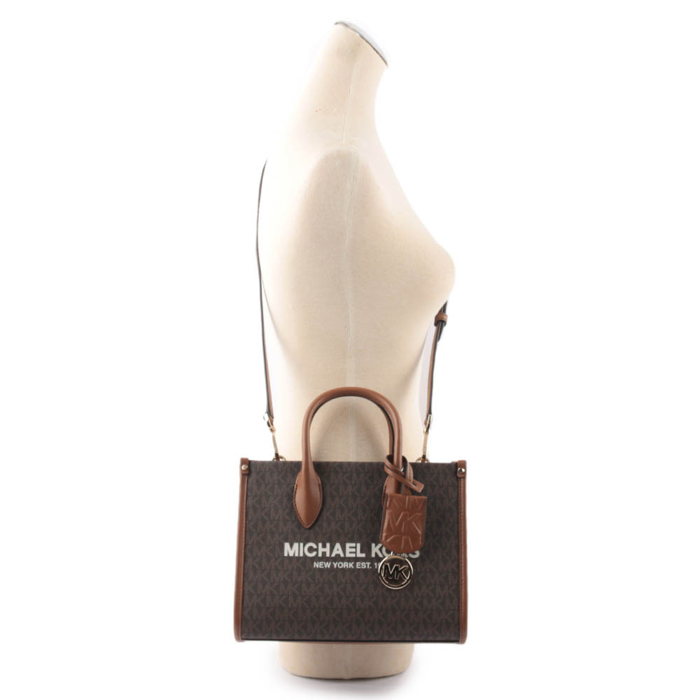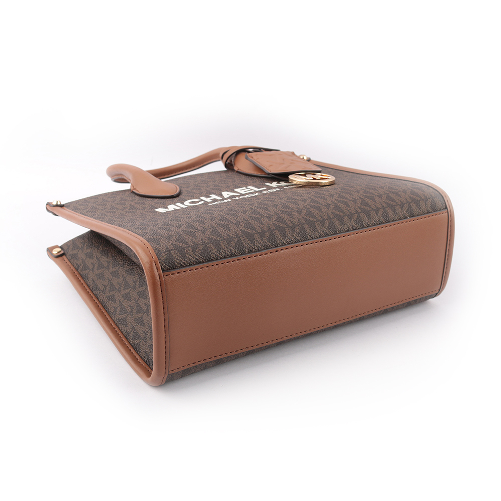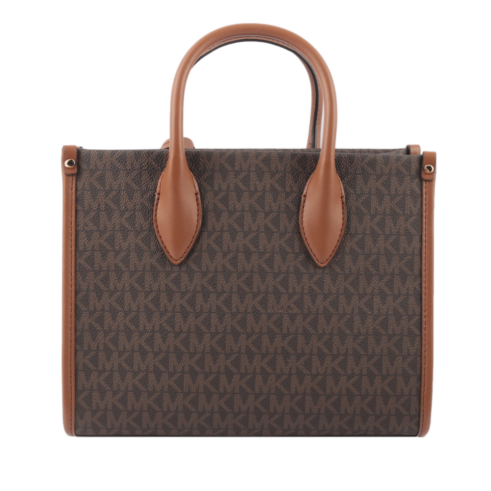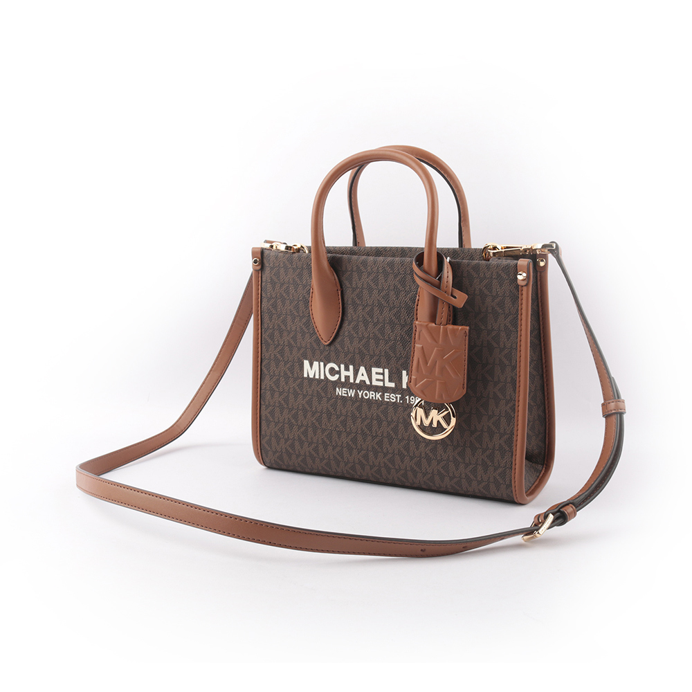 【MICHAEL KORS】Mirella 滿版塗層帆布小款二用托特包(咖啡色)