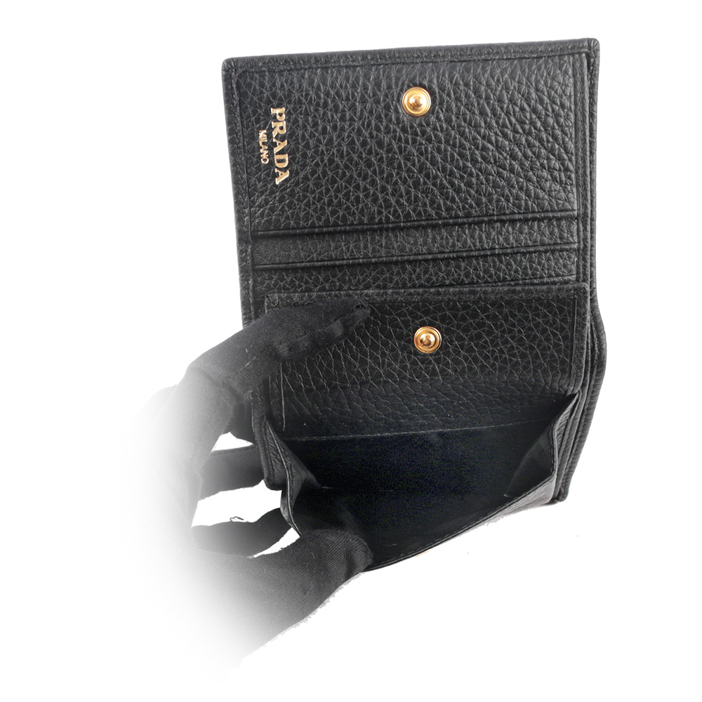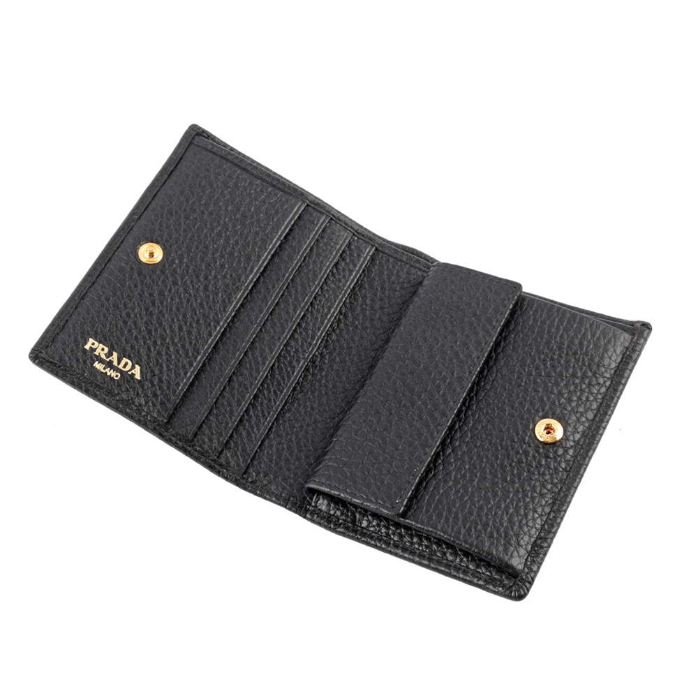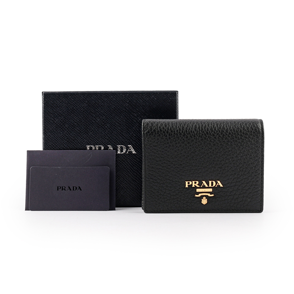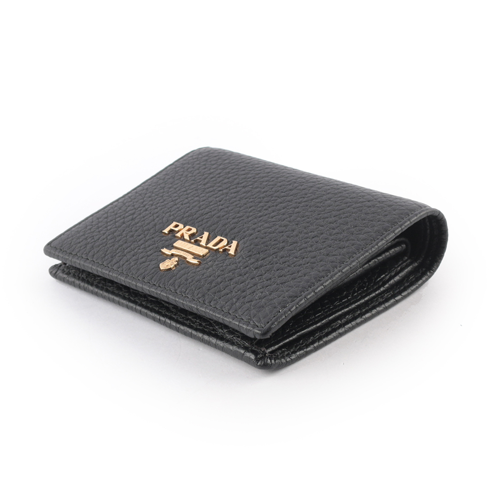 【Prada】浮雕Logo荔枝皮革二折短夾(黑色)