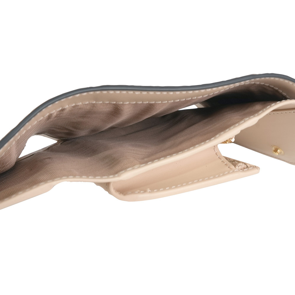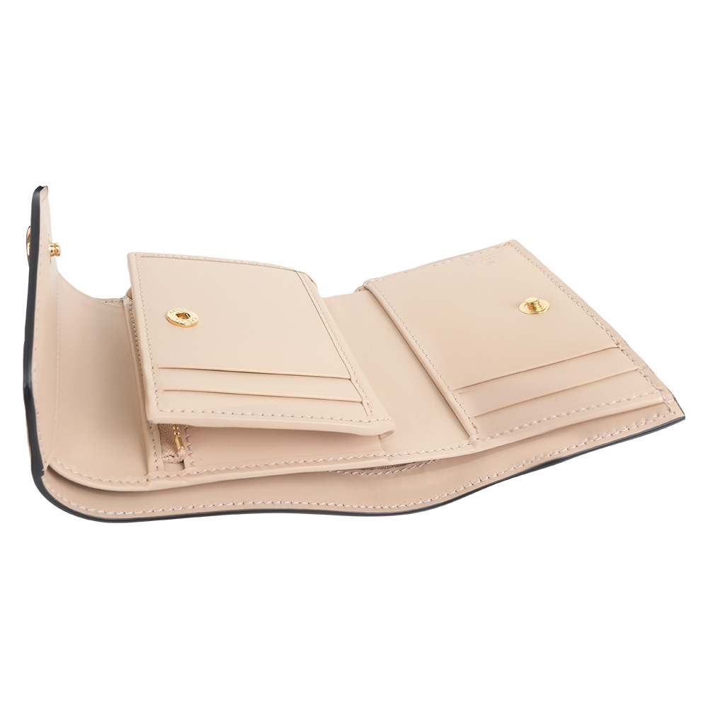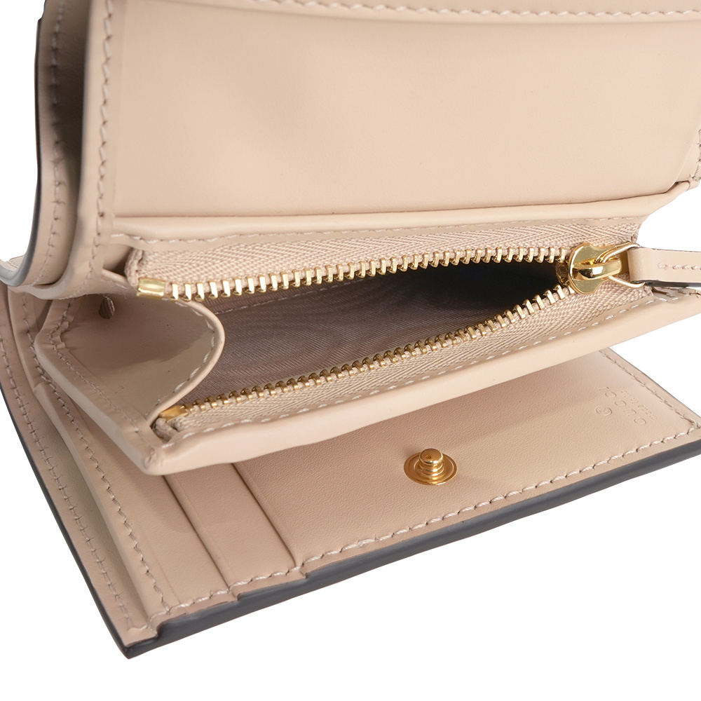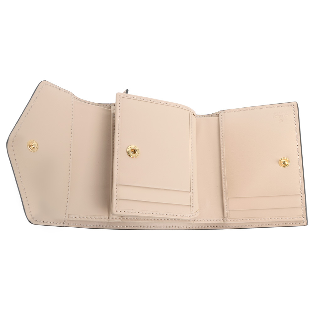 【GUCCI】GG Logo 牛皮壓紋釦式三折短夾(淺米色)
