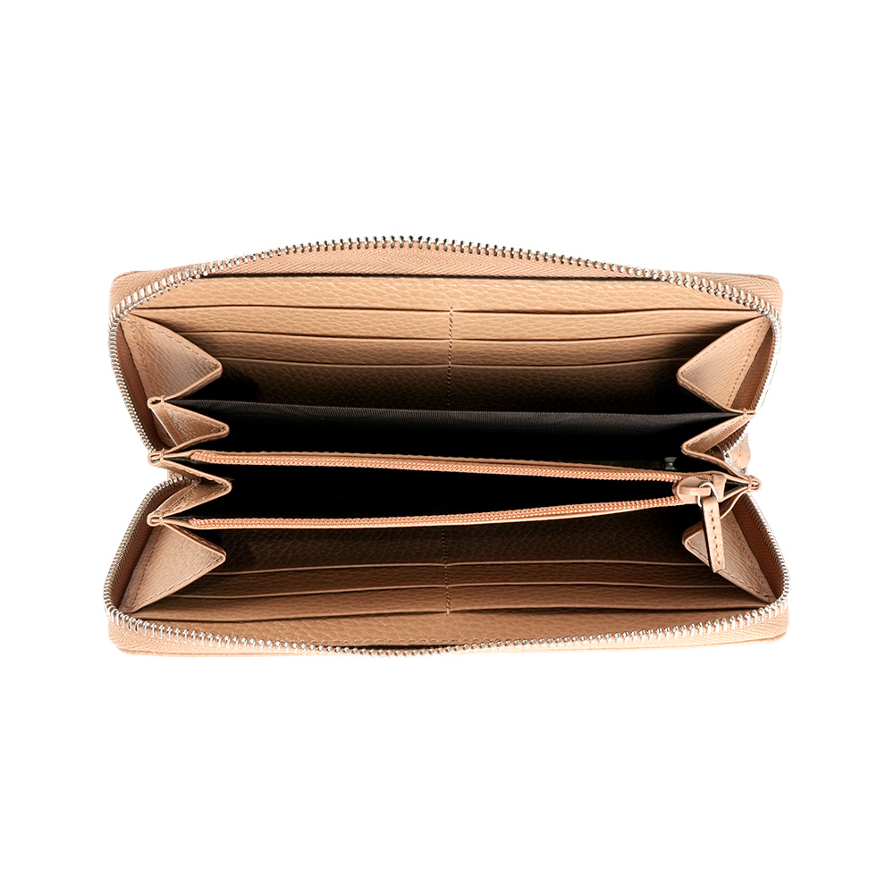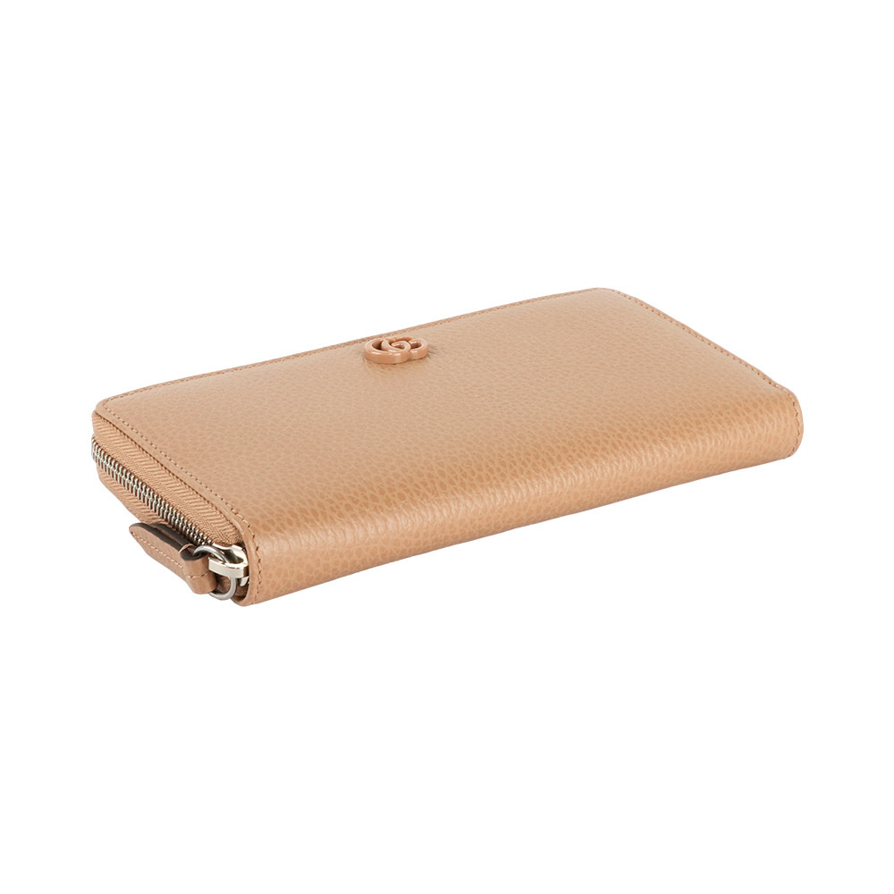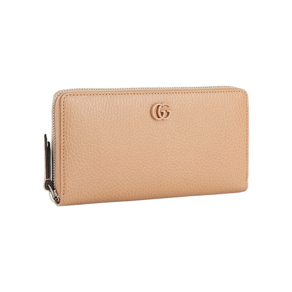 【GUCCI】GG Logo 荔枝皮革ㄇ形拉鍊長夾(裸粉色)
