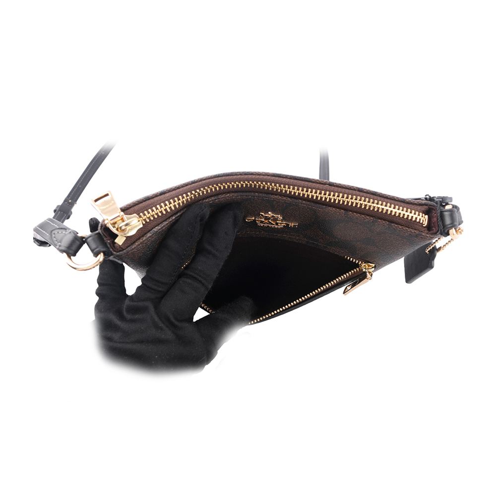 材質:標誌塗層帆布、再生皮革;布料襯裡