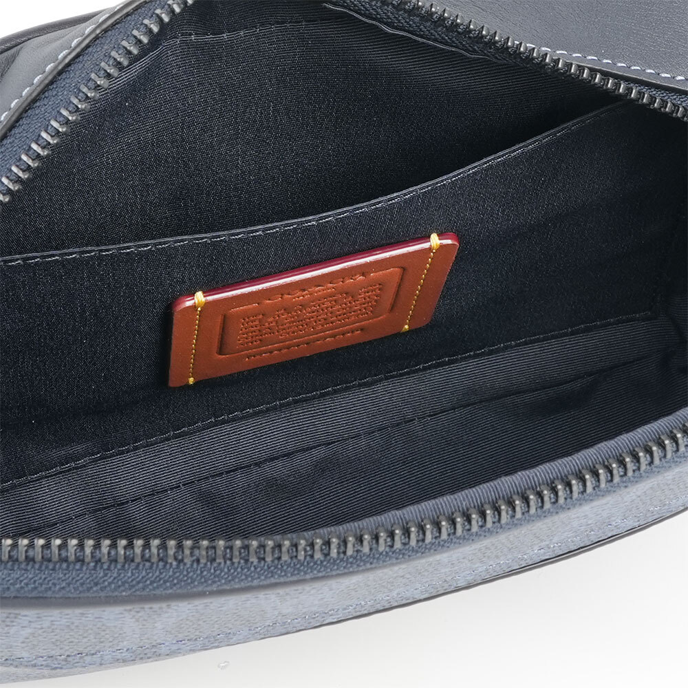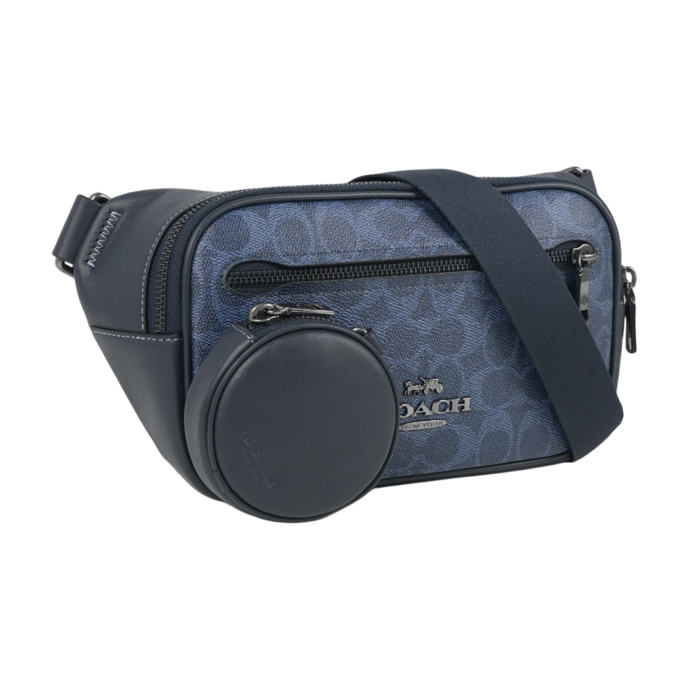 【COACH】Elias 塗層帆布及小牛皮附零錢小袋腰包/胸口包(牛仔藍/午夜藍)